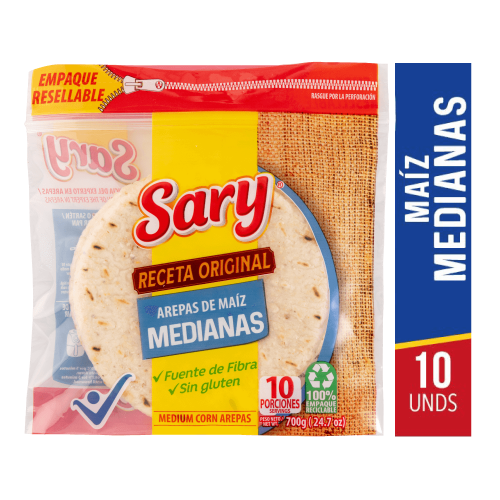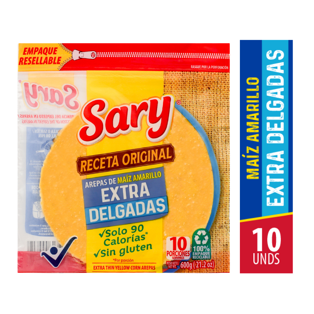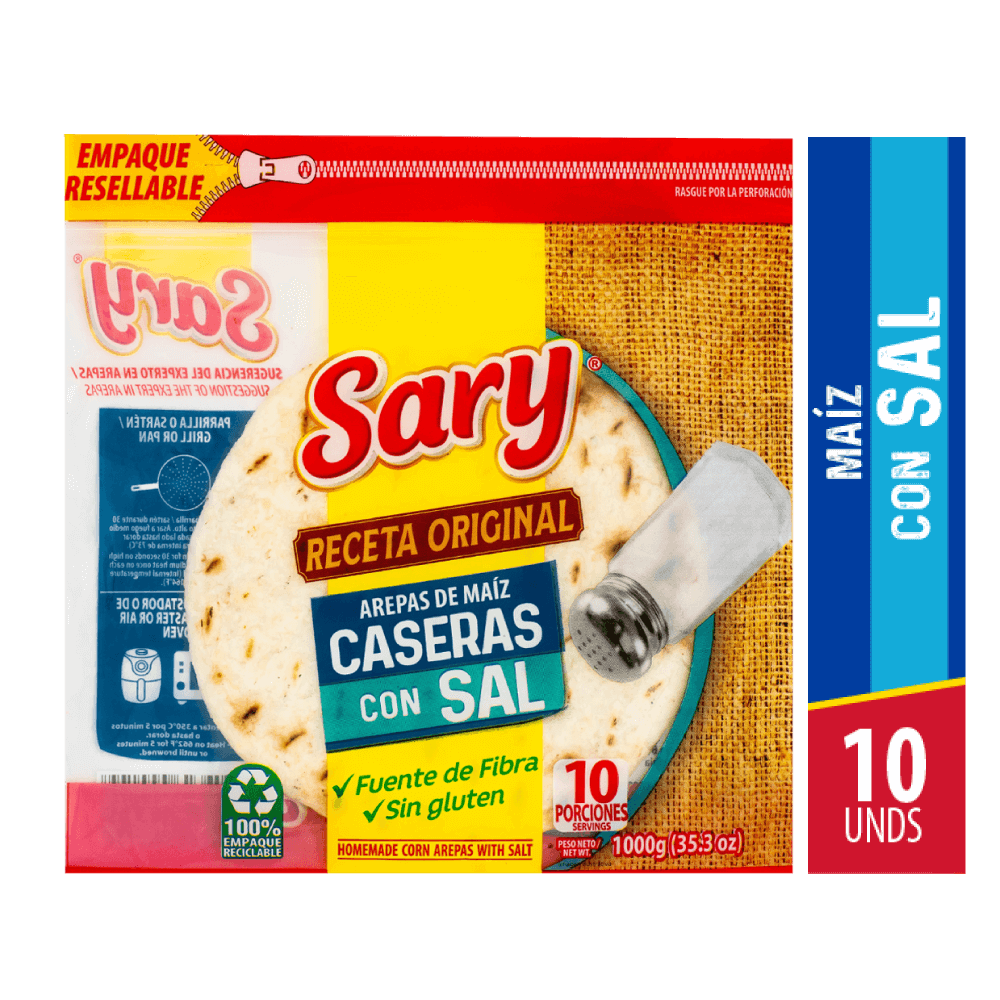 Livianas, crocantes y listas en minutos. Las arepas de maíz extradelgadas Sary son ideales para quienes buscan una opción rápida y saludable. Con solo 87 calorías, son sin gluten, altas en fibra y no contienen azúcares añadidos.